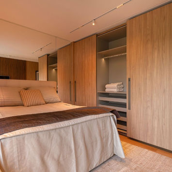 Elaboramos o projeto executivo compatibilizado, com caderno técnico (peças, acabamentos, ferragens e etiquetas por ambiente) e planejamento de montagem.